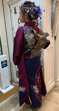 他店の振袖レンタル品、訪問着レンタル品、持ち込みのママ振りも、現代風にアレンジしてコーディネート・着付けが可能です。
